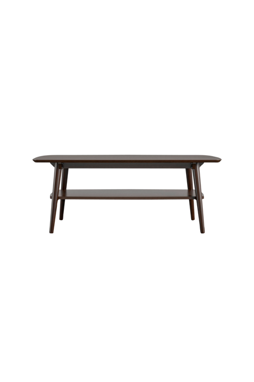 Komplettera vardagsrummet med soffbordet Brittany från Novogratz. Bordsskivans vackra träfaner med valnötsfinish ser ut och känns som riktigt trä och passar perfekt ihop med de vinklade träbenen. Den stora bordsskivan har en rundad kant och rymmer böcker och tidningar, glasunderlägg, snacks och elektronik. Hyllan under bordsskivan passar perfekt för böcker och tidningar. Soffbordet levereras i ett platt paket och kräver montering. Vi rekommenderar att två vuxna monterar produkten.