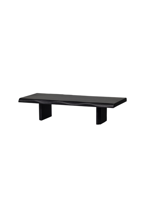 – bord i organisk form – kan användas som soffbord – tillverkat av robust mangoträ – H 55 cm x B 120 cm x D 28 cm med plats för drycker, en bukett rosor eller lyxiga, vackra böcker. Cali soffbord ingår i en exklusiv kollektion från det nederländska märket WOOOD och ger gott om plats när du kopplar av! Den organiskt formade bordsskivan och den lyxiga mattsvarta färgen skapar en elegant men ändå lekfull design. Det släta mangoträet är otroligt tåligt. Så är din sittgrupp redo för Cali? material bordet är tillverkat av slipat mangoträ med mattsvart finish. Mangoträ är känt för den varmt gyllenbruna färgen, hållbar tillväxt och lång livslängd. Mangoträ kännetecknas också av tydligt synlig ådring och färgskiftningar. Ådringen, gul färgskiftning, mörka linjer och kvistar gör varje produkt av mangoträ unik. Mangoträ är mycket tåligt och ett av de hårdare träslagen och därför skadas det inte lätt. mått – höjd: 55 cm – bredd: 120 cm – djup: 28 cm – maximal belastning: 45 kg – vikt: 29,5 kg skötsel möbler av mangoträ är lättskötta. Du håller dem enkelt damm- och fläckfria med en lätt fuktig, ren trasa. Föremål av mangoträ ska endast användas inomhus. Extra behandling eller skydd med transparent beläggning är möjlig, men anses inte nödvändigt under de första åren. Fråga gärna i färghandeln för att få råd och information om behandling av mangoträ. leverans bordet levereras i ett paket. Produkten är lätt att montera med hjälp av den bifogade monteringsanvisningen. För att skydda hårda golv, sätt möbeltassar av filt på undersidan av benen.