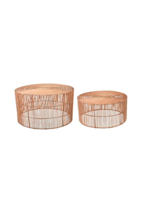 Elmima set med 2 soffbord av 100% rotting med naturlig finish. Mått stora bordet; Diameter 66, höjd 41 cm. Lilla bordet; Diameter 55, höjd 25 cm.