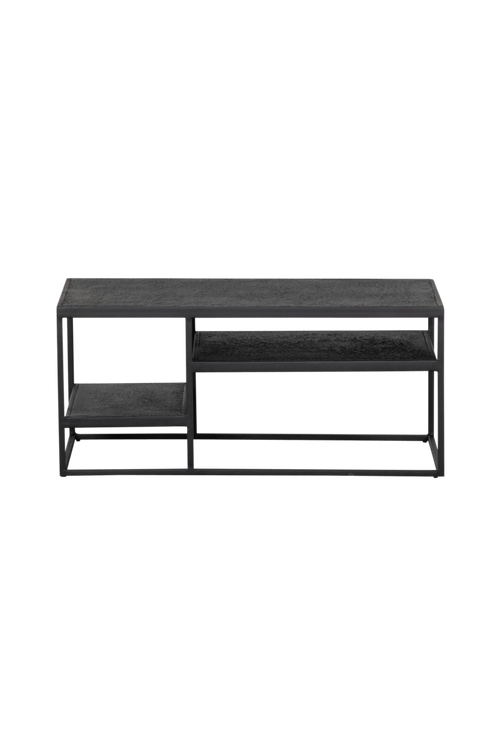 Modernt soffbord med UV-skydd för utomhusbruk! H 40 x B 90 x D 45 cm Soffbord Febe kommer från kollektionen från det holländska varumärket WOOOD. Ett unikt föremål i ditt vardagsrum eller trädgård! Utseendet på dessa möbler är modernt och industriellt. Bekvämt och praktiskt: Soffbordet är utrustat med UV-skydd så att det också kan användas utomhus under normala väderförhållanden. Vid hårda golv, placera filtglider under basen, detta förhindrar skador på golvet. Soffbordet är gjord av gjuten svart metall. Soffbordets maximala vikt är 45 kg. Febe-soffbordet själv väger 16,3 kg.