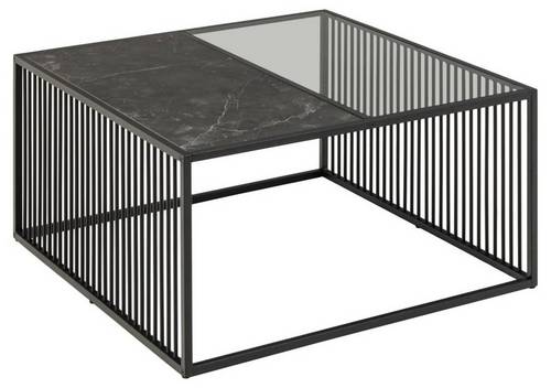 Är du redo att imponera? Gör dig i så fall beredd för detta trendiga soffbord. För att åstadkomma en unik stämning är bordsskivan uppdelad i en sida med rökigt glas och en sida som liknar svart marmor. Sidorna ger ett komplett utseende med rundade, vertikala metallribbor som också ger designen en modern, lätt känsla. Tempererat glas.