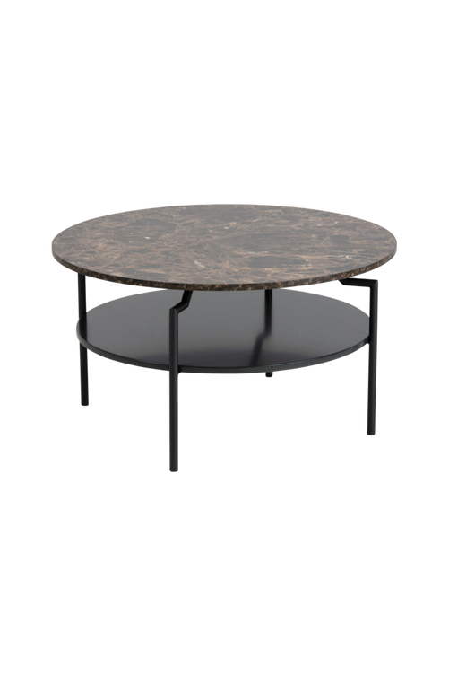 Soffbord med marmorlook på MDF skiva och metall ben. Diameter 80, höjd 45 cm. Montera själv.