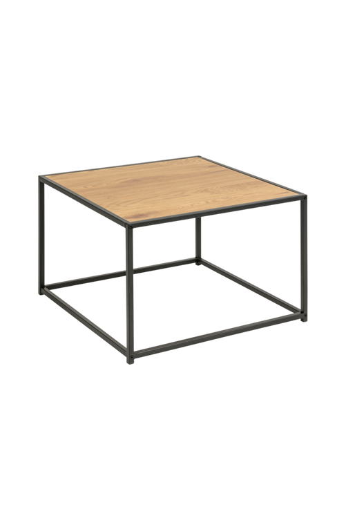 Soffbord med toppskiva i vild ek. Underrede i matt metall. Mått: H: 40 x B: 60 x D: 60 Ej monterad