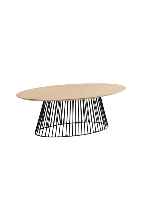 Leska ovalt soffbord, med måtten 120 x 65 cm, har en ovandel av massivt mangoträ och en stomme av metallstänger som svetsats fast bit för bit och målats med svart, matt färg. Stommens form bevarar också känslan av ljushet och rymlighet, tack vare mellanrummet mellan stängerna. Bredd: 120 cm. Djup: 65 cm. Höjd: 40 cm.