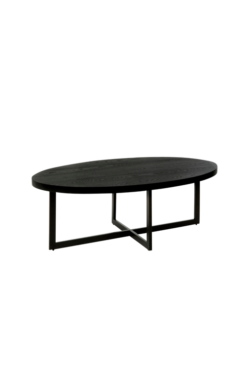 Stilrent tvådelat soffbord i svart askfaner på MDF. Information Bredd: 130 cm Djup: 80 cm Höjd: 45 cm Levereras omonterad.