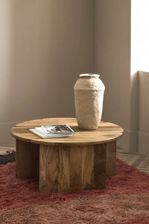 Tvådelat soffbord i mangoträ och metall Borden kan användas separat som t.ex. två matchande sängbord eller kombineras till ett runt soffbord. Maxvikt: 50 kg. Levereras monterade.