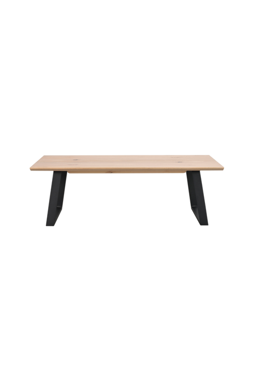 Melville soffbord med tvådelad toppskiva i vitpigmenterad lackad vildek. Underrede i svartlackad metall ger bordet ett modernt uttryck och skapar ett stadigt bord. Längd 140 cm, bredd 65 cm, höjd 46 cm. Soffbordet ingår i vår serie Melville och är designat av Rowico.