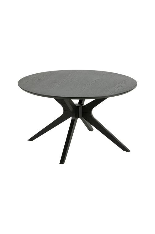 Soffbord med ek fanerad lackad topp. Ben av massiv björk med ek faner. Mått; Diameter 80 cm, höjd 45 cm. Levereras omonterad.