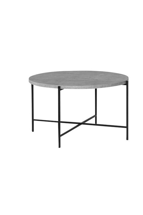 Soffbord i svart metall med skiva i betonglaminat. Längd 80 cm. Bredd 80 cm. Höjd 48 cm. Vikt 14 kg.