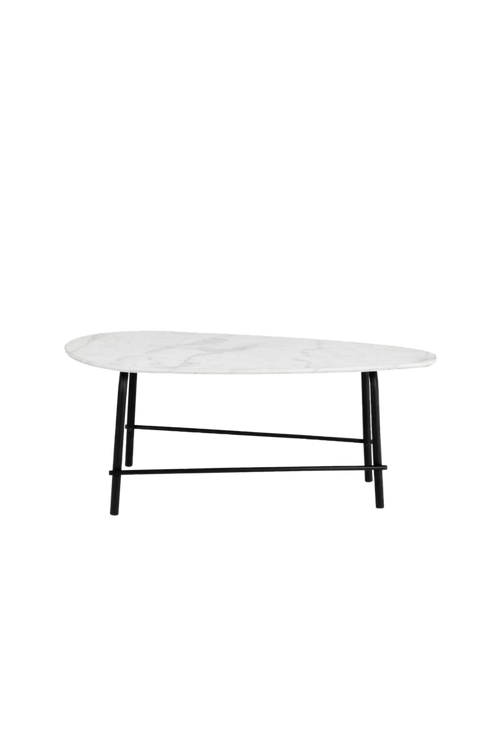 Soffbord Mylo, MDF Folieyta Marmor / Svarta metallben, 110 x 55 x 45 cm