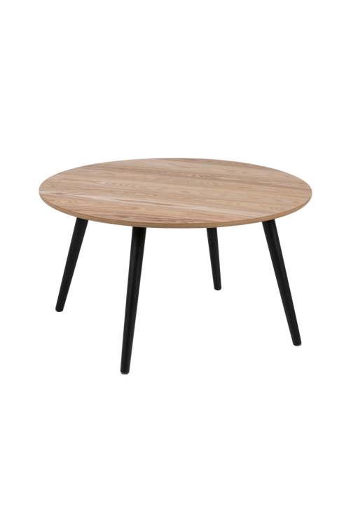 Soffbord, askfanerad och ben av gummiträ. Dia 80, höjd 45 cm. Montera själv.