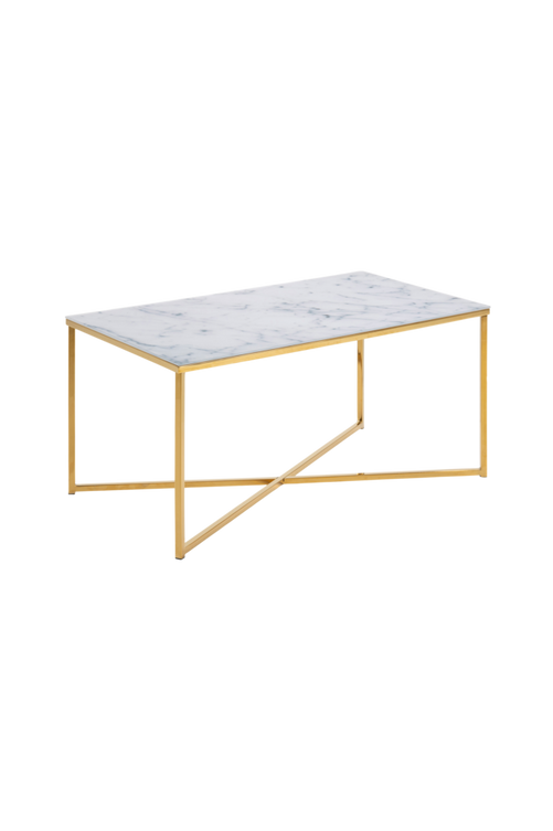 Soffbord Novalie. Metallstomme och marmorprintat glas. Mått; 50 x 90, höjd 45 cm. Levereras omonterat.