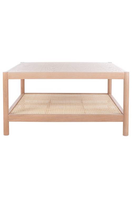 Soffbord i lackad ek. Hylla med rotting. Levereras omonterad.