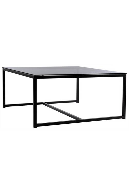 Soffbord i färgat glas och underrede i lackerad metall. Levereras omonterad.