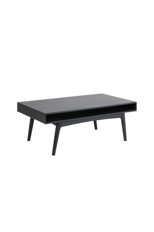 Soffbord gjord av svartmålad ek. Lackerad underhylla i svart. Specifikation: Höjd: 50 Bredd: 70 Längd: 130 Material: Ek Ej monterad