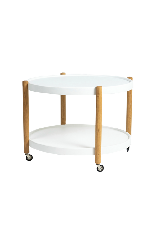Runt soffbord med hjul, både som snygg detalj men gör det också enkelt att flytta vid behov.