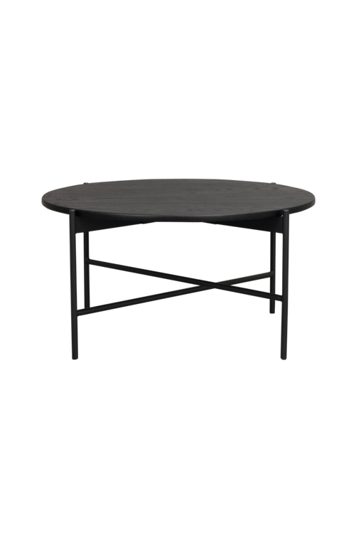 Skye runt soffbord i modern, stilren design. Skye har bordsskiva i borstad svartmålad ek faner och ben i pulverlackerad metall. Skye soffbord finns också i andra modeller och som matbord.