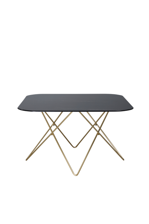 Tristar soffbord med en bordstopp i marmorglas och bordsben i metall. Bordets mått: Längd: 80 cm, bredd: 80 cm, höjd: 50 cm. Bordet kräver enklare montering.