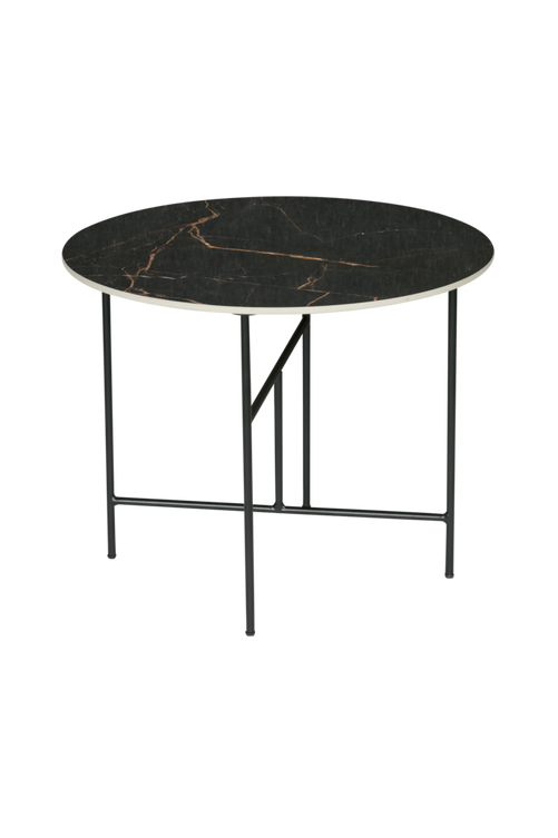 Ett riktigt blickfång i alla interiörer! Detta Vida-sidobord från interiörmärket WOOOD har ett trendigt och lyxigt utseende. Detta beror på kombinationen av porslinbordsskivan med marmorutseende och den smala metallbotten. Denna metallbotten är fällbar. Det gör det lättare att flytta bordet. Soffbordets toppskiva med marmorutseende gör varje bord unikt. Detta Vida sidobord är 48 cm högt och har en diameter på 60 cm. Den övre är 1 cm tjock.
