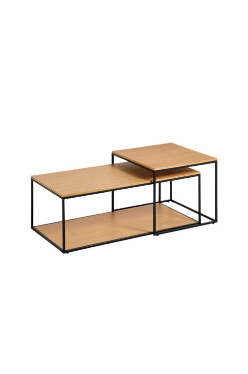 Kave Home har skapat kollektionen Yoana, en mångsidig design som kan anpassas till alla hem och stilar. Upptäck den fina kombinationen av ek faner och pulverlackerad metall. Mått; Stora bordet 50×100, höjd 35 cm. Lilla bordet; 55×50, höjd 43 cm.