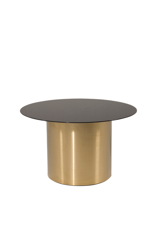 Furniture Fahsion Ystad soffbord med en topp i glas och bordsben i borstad mässing med detaljer i trä. Bordet kräver enklare montering.