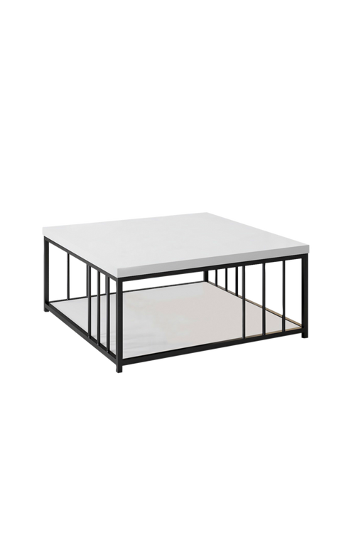 100% spånskiva med melaminbeläggning översta bordsskivans tjocklek: 3,6 cm understa bordsskivans tjocklek: 1,8 cm ben av metall bredd: 90 cm djup: 90 cm höjd: 40 cm