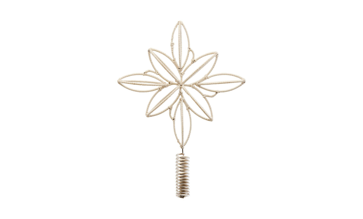 Denna julgransstjärna i från House Doctor är vacker i sin enkelhet och passar både till en pyntad julgran med glitter, som till en gran utan pynt. Den unika formen på stjärnan gör den unik och dekorativ. Design & egenskaperUnik och dekorativ julgransstjärna.Placeras högst upp i granen.Stjärnan är gjord av järn och bomull.Vikt: 0.18 kg.Stjärnans höjd är 32 cm och stjärnans diameter 23 cm.Torkas av med en fuktig trasa.
