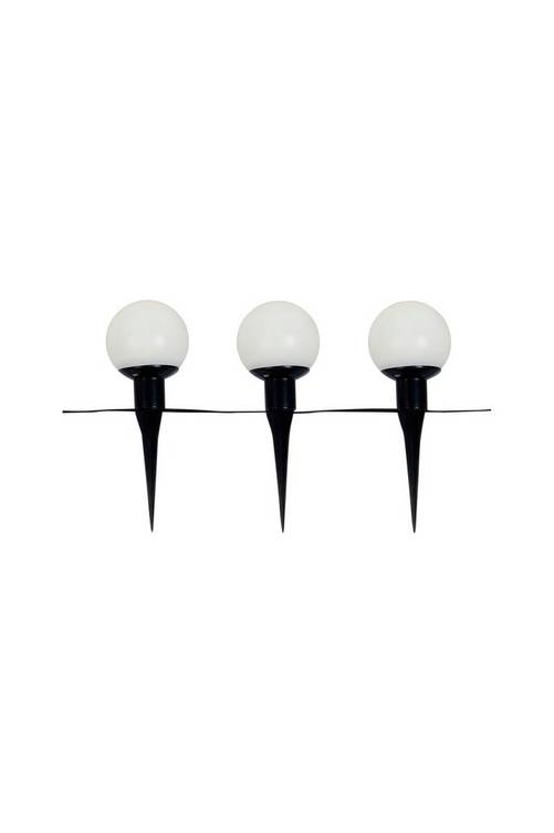 Solcellsbollar i plast. LED. Går att ha både som slinga och trädgårdsspett. Mått: Längd 700 cm. Djup 8 cm. Höjd 8/22 cm. Batteri ingår.
