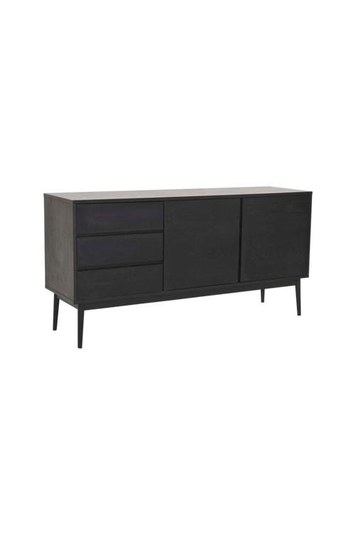 Sideboard i lackad askfaner. Ben i lackad solid ek. 3 st lådor och 1 st dubbelskåp med 1 st justerbar hylla. Mått låda: Bredd: 46 cm/djup:34 cm/Höjd:7,5 cm. Mått skåp: Bredd: 49 cm x 2 st/Höjd: 51,5 cm. Mått från golv upp till sarg: 20 cm. Dörr och lådor med softclose. Maxvikt lådor: 8 kg. Maxvikt hylla 20 kg. Maxvikt topp: 60 kg. Höjd: 80,3. Bredd: 160 . Djup: 45 cm. Material: Oak/MDF/ash veneer