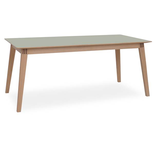 Matbord, utan iläggsskiva. 6 personer. 8-10 personer. – 110 Seed HPL laminat, kant i vitpigmenterad mattlackad ek och ben massiv vitpigmenterad mattlackerad ek