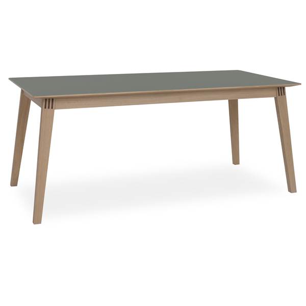 Matbord, utan iläggsskiva. 6 personer. 8-10 personer. – 219 verde nanolaminat, kant i vitpigmenterad mattlackad ek och ben massiv vitpigmenterad mattlackerad ek