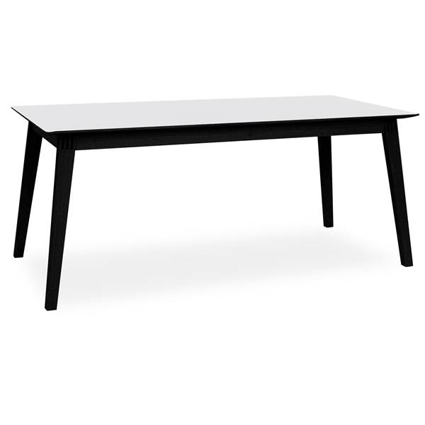 Matbord, utan iläggsskiva. 6 personer. 8-10 personer. – 101 White HPL laminat, kant i svartbetsad mattlackad ek och ben massiv svartbetsad mattlackerad ek
