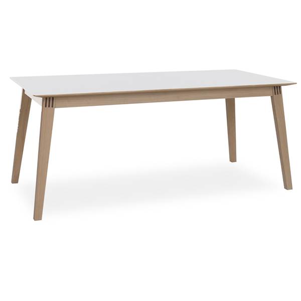 Matbord, utan iläggsskiva. 6 personer. 8-10 personer. – 201 Bianco nanolaminat, kant i vitpigmenterad mattlackad ek och ben massiv vitpigmenterad mattlackerad ek