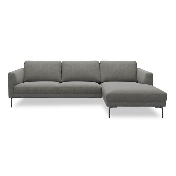 2½ sits högervänd Soffa med schäslong, siddehøjde 44 cm. – Rate 68 Dark grey textil och ben i svart metall