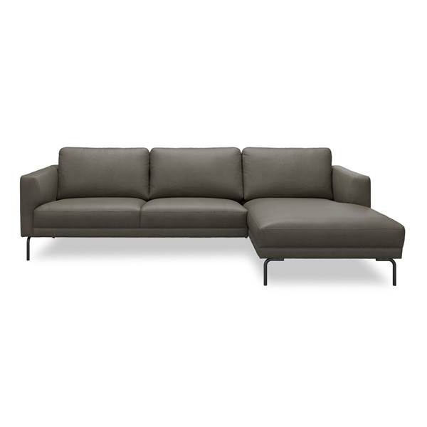 2½ sits högervänd Soffa med schäslong, siddehøjde 44 cm. – Kentucky 2 stone bonded läder och ben i svart metall