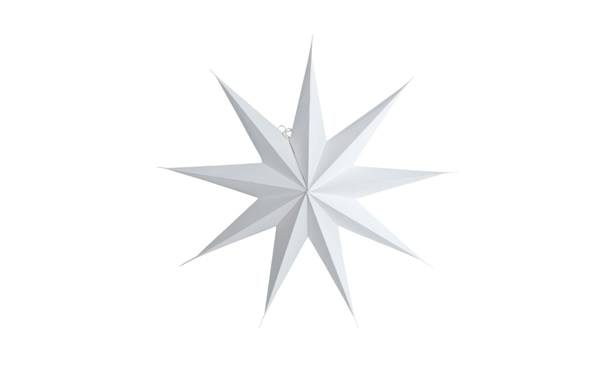 Stilren julstjärna med nio armar som du vackert kan hänga i fönstret. Julstjärnan är i papper och stängs ihop med hjälp av ett knytband. Design & komfortJulstjärna i papper.Sladd och väggkontakt medföljer ej.