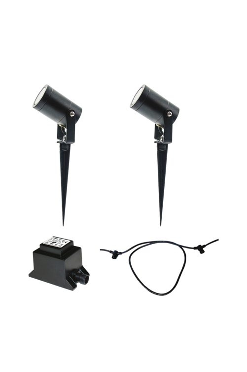 Startpaketet hjälper dig att komma igång. Du bygger sedan efter hand enkelt vidare på ditt system. Startpaketet innehåller två enheter av den svarta allroundarmaturen Luna, en Grenkabel 5m samt en kraftfull Transformator 60W. Tips: Många lägger till artikeln Ljussensor för automatisk reglering av påslagning-avslagning av utebelysningen. Luna svart – 5W – LED – 350 lumen – Varmvitt ljus 3000K – 35 grader ljusspridning – GU5.3 – LED-ljuskälla – 12V – IP65 – Svartlackerad aluminium – 70cm kabel – CE-märkt Grenkabel – 5m – En robust förlängningskabel i gummi (2×0,75mm2) som är försedd med 5st örgreningar längs med kabeln. – Gummipackningar samt skruvhattar ingår. Transformator 60W – In: 230-240V/50Hz – Ut: 12V AC 60VA – CE – IP67 – 1,5m kabel med nätkontakt.