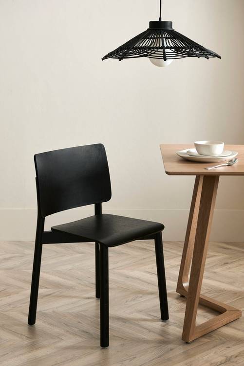 Två stolar med stomme i massiv ask. Sits och ryggstöd i fanerad plywood. Levereras monterade.