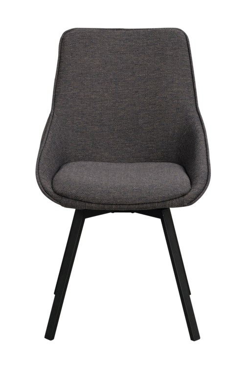 Snurrstol i tyg med ben i pulverlackad svart metall. Stoppad sits i kupad design. Stoppning av polyeterskum. En snygg och stilren stol som är designad av Rowico. Bredd 51 cm, djup 57 cm, sitthöjd 47 cm och totalhöjd 87 cm. Montera själv.