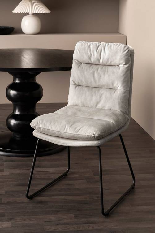 2 stolar med ben och stomme i pulverlackad metall. Klädd stomme och mjukstoppad dyna. Tyg i sammet. Enklare montering. Vill du titta närmare på ett tyg och känna på kvaliteten? Mejla oss på customerservice@ellos.se eller ring 033-33000 och beställ hem ett gratis tygprov! Ange det artikelnummer du ser längst ner i denna beskrivning.