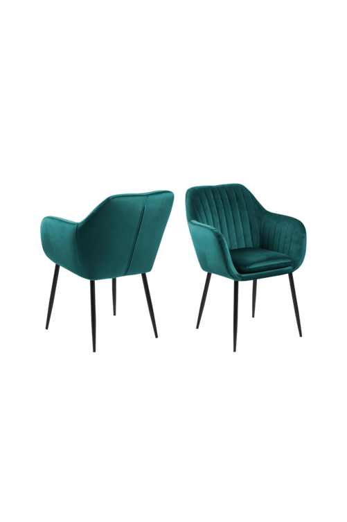 Matstol Emil. Trästomme med polyeterfyllning. Sammetstyg av 100% polyester 25 000 Martin Dale. Höjd 83, djup 59, bredd 57 cm. Sitthöjd 49, sitt djup 39 och sittbredd 40 cm.