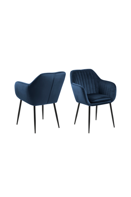 Matstol Emil. Trästomme med polyeterfyllning. Sammetstyg av 100% polyester 25 000 Martin Dale. Höjd 83, djup 59, bredd 57 cm. Sitthöjd 49, sitt djup 39 och sittbredd 40 cm.