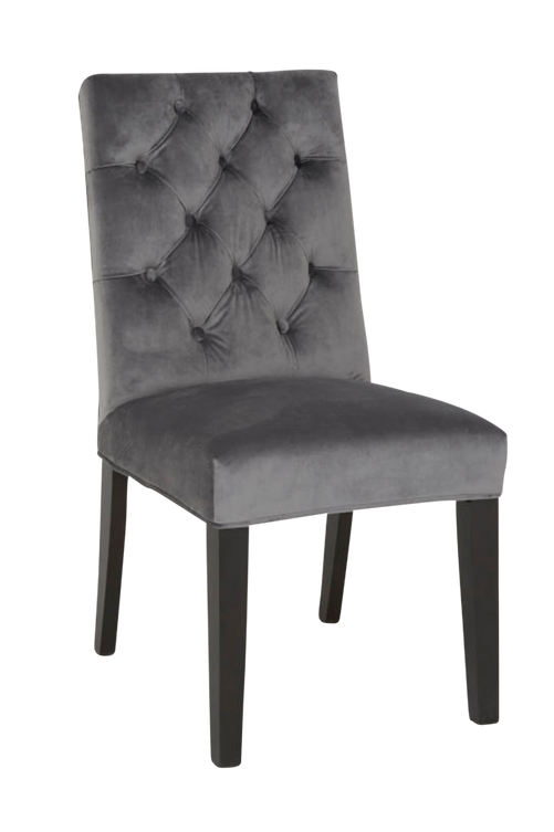 Snygg matstol i grå sammet med svarta ben Information Bredd: 50cm Djup: 65cm Höjd: 99cm Delvis monterad