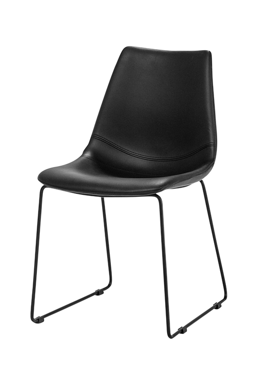 Stol i svart PU med svart metallunderrede. Bredd 47 cm. djup 58 cm. höjd 83 cm. sitthöjd 46 cm. Vikt 7 kg.