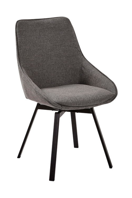 Haston stol med stomme av poppelplywood, är stoppad och klädd med mörkgrå textil. Sitsen är vridbar inom en viss gräns och återgår alltid till originalpositionen. Den 50-talsinspirerade designen gör att stolen kan användas både vid matbordet i vardagsrummet eller som en bekväm stol på kontoret. Den passar perfekt på båda ställena. Bredd: 50 cm. Djup: 59 cm. Höjd: 86 cm.