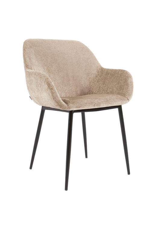 Karmstol med stoppning och senapsgult sammetstyg. Ben av pulverlackerad metall. Bredd: 59 cm. Djup: 52 cm. Höjd: 83 cm.