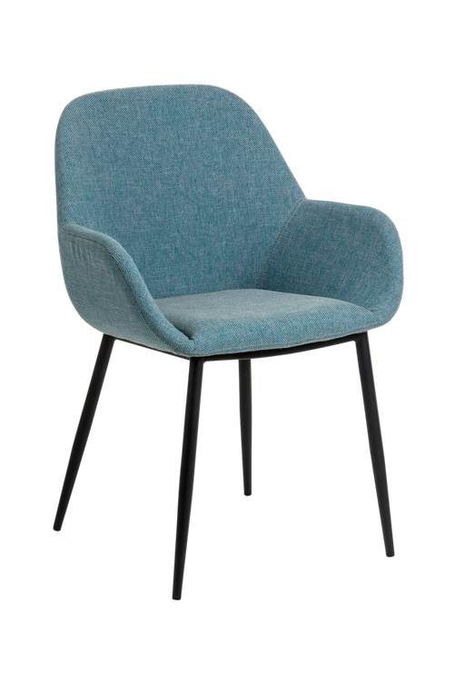 Karmstol med stoppning och senapsgult sammetstyg. Ben av pulverlackerad metall. Bredd: 59 cm. Djup: 52 cm. Höjd: 83 cm.