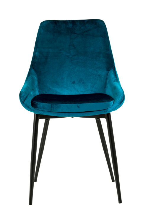 Modern och bekväm matstol. Det perfekta valet för din matplats. Lex stolen är en stoppad matstol klädd i sammetstyg av 100 % polyster. Benen i svart pulverlackad metall.