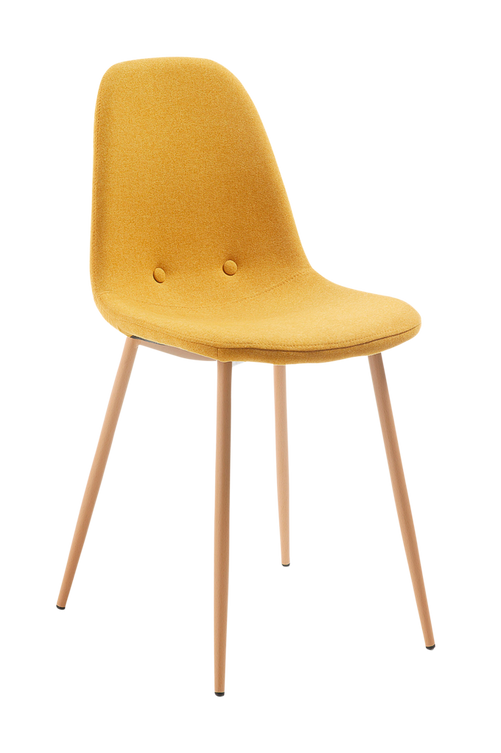 Stoppad stol med knappar i rygg. Metallben med boklook. Höjd 87, bredd 40, djup 47 cm. Sitthöjd 49, sitt djup 39 cm. Montera själv.