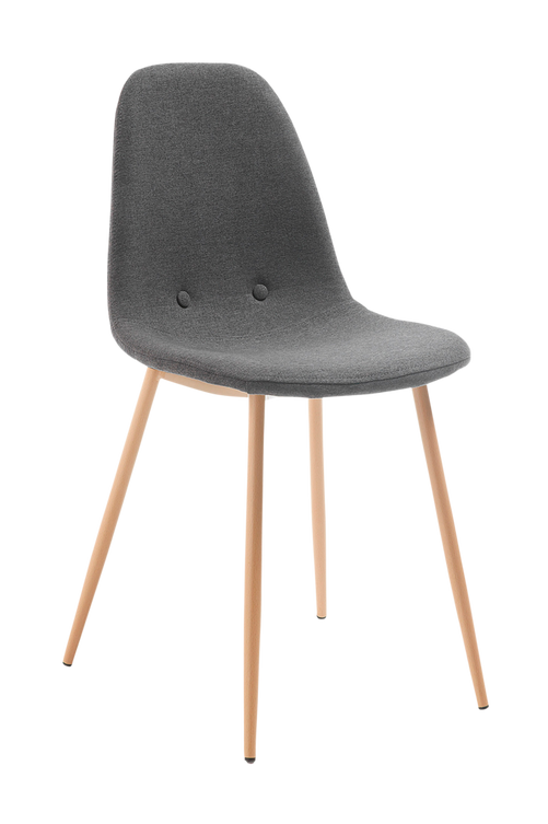 Stoppad stol med knappar i rygg. Metallben med boklook. Höjd 87, bredd 40, djup 47 cm. Sitthöjd 49, sitt djup 39 cm. Montera själv.